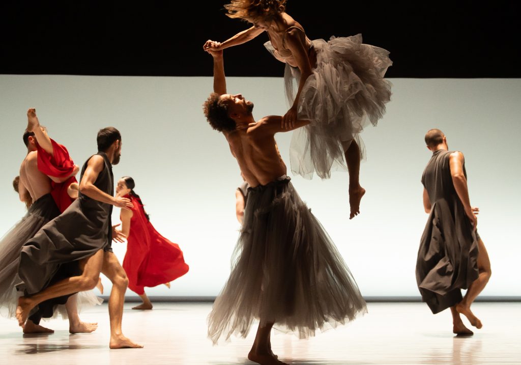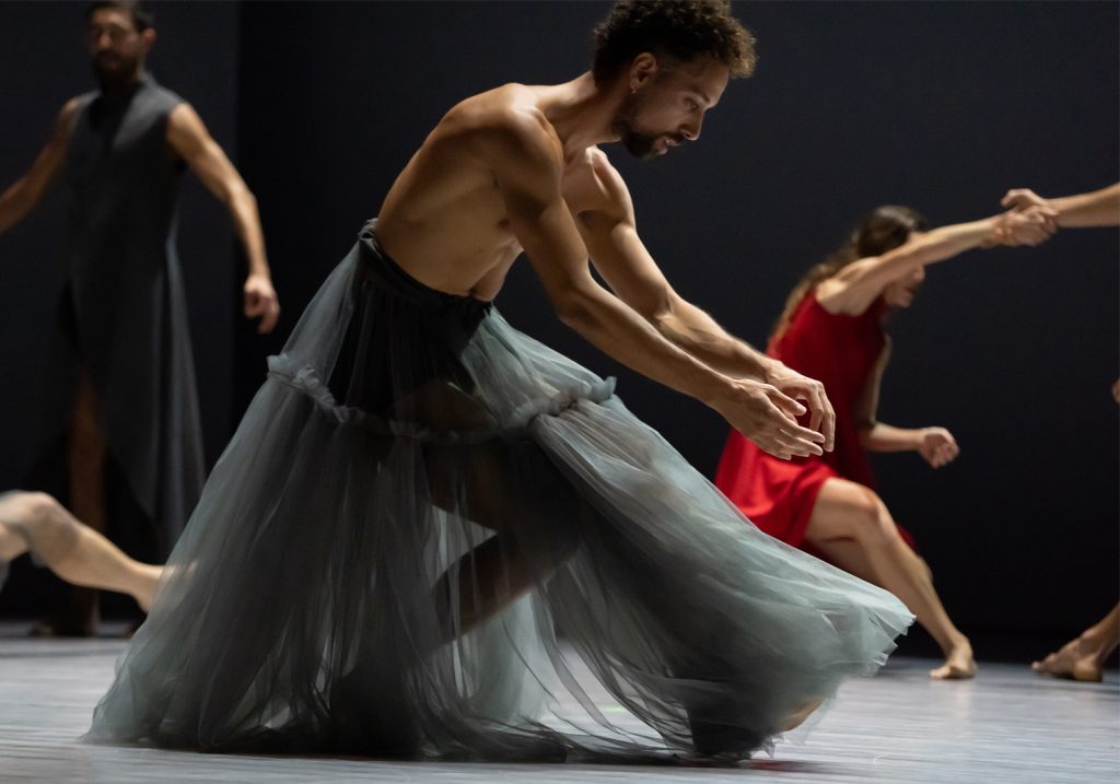 At the heart of the performance stand the dancers, moving within the race of modern culture.