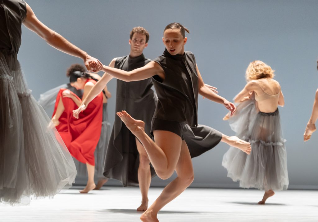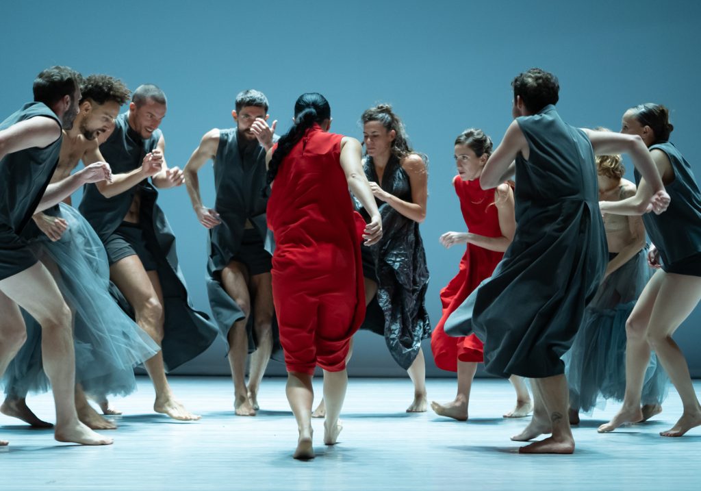 The choreographic space oscillates between the individual and the collective, between solitary gestures and shared circles.