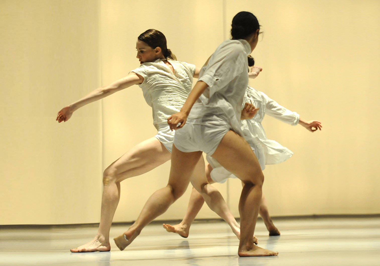 במרכז המופע עומדים הרקדנים, הנעים בתוך מרוץ הזמן של התרבות המודרנית. הגוף נדחף קדימה, לעיתים עד סף מכניות; תנועות חוזרות רצים אך תקועים במקום, כמו משקפים את הסתירה שבין תנועה מתמדת לקיפאון.